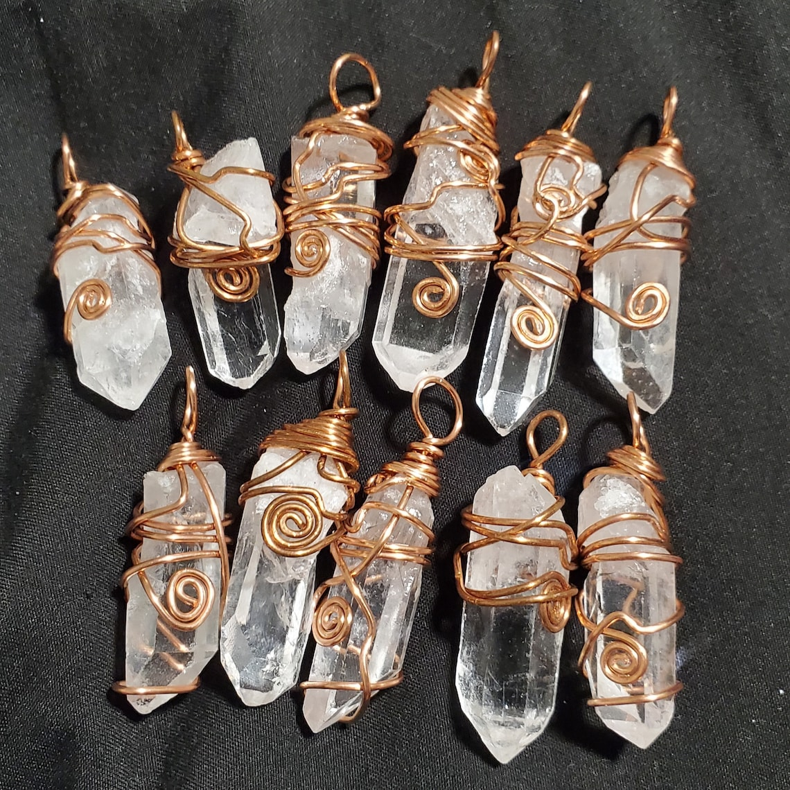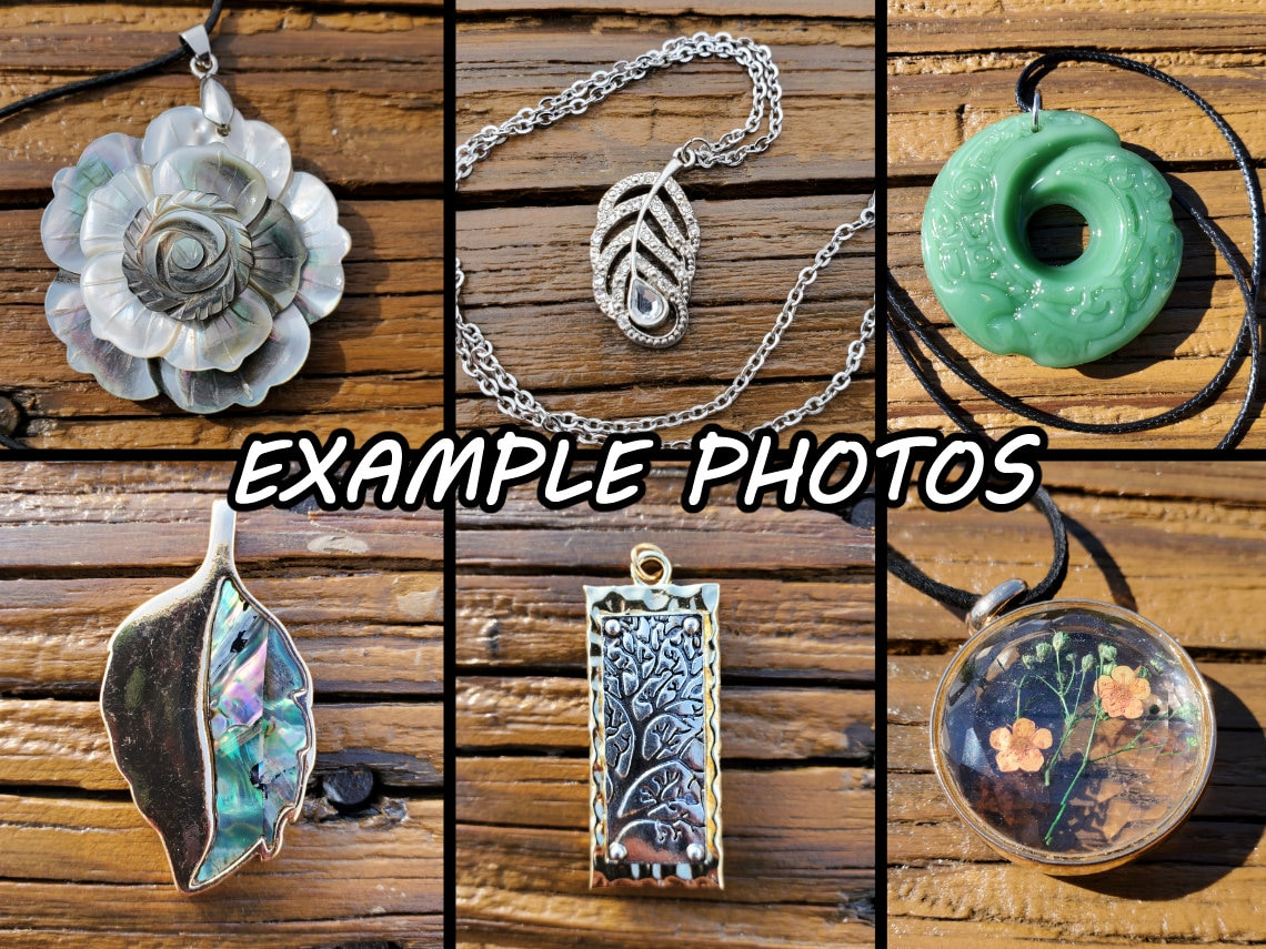 You can select from our regular silver-plated necklaces, our more specialty silver-plated necklaces, crystal wire-wrapped pendants, rings, and other trinkets. Strings for pendants will usually be about 18-22 inches, depending on the pendant